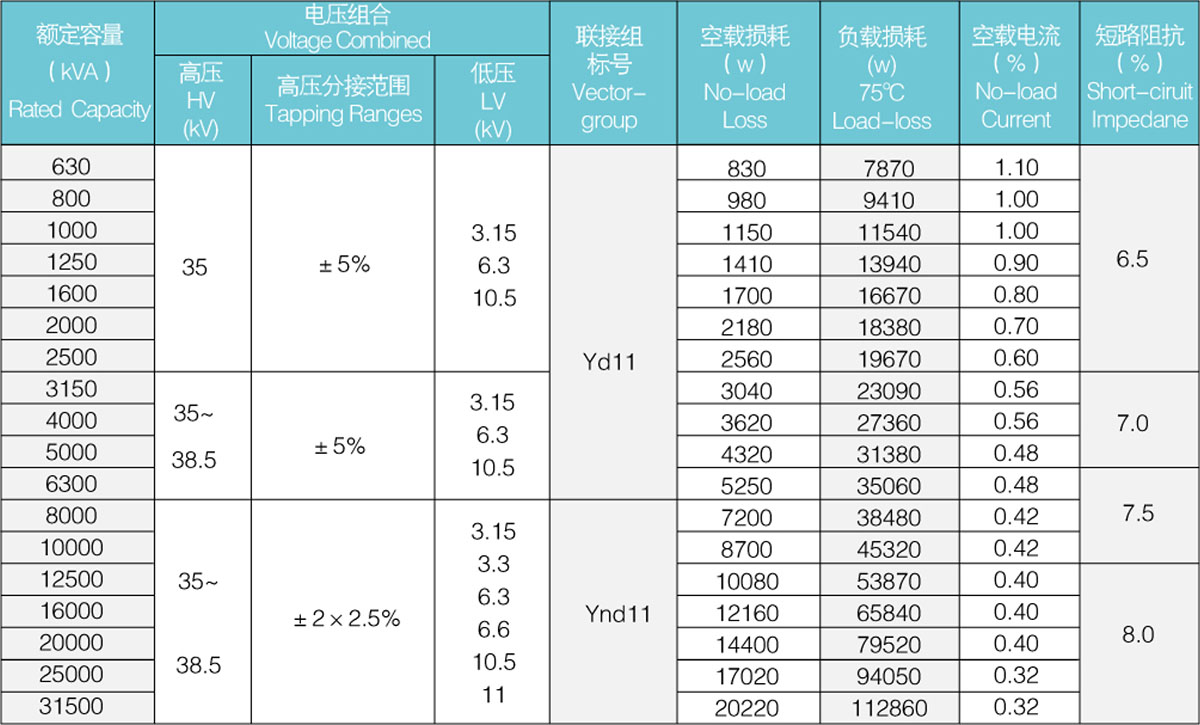 該產(chǎn)品執(zhí)行國(guó)家標(biāo)準(zhǔn)GB1094-1996《電力變壓器》和GB/T6451-2008 《三相油浸式電力變壓器技術(shù)參數(shù)和要求》。S11系列變壓器是新系列低損耗銅繞組產(chǎn)品,該產(chǎn)品采用優(yōu)良材料,在線圈器身和絕緣方面,運(yùn)用新工藝、新材料、從而使空載、負(fù)載損耗明顯降低,性能和結(jié)構(gòu)可靠和優(yōu)良。