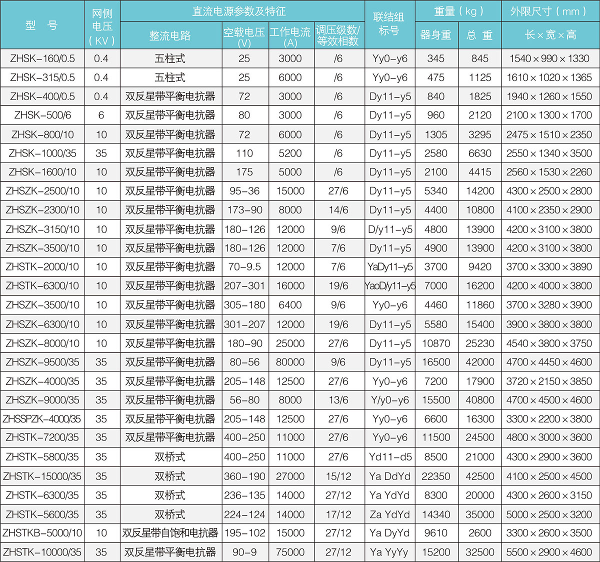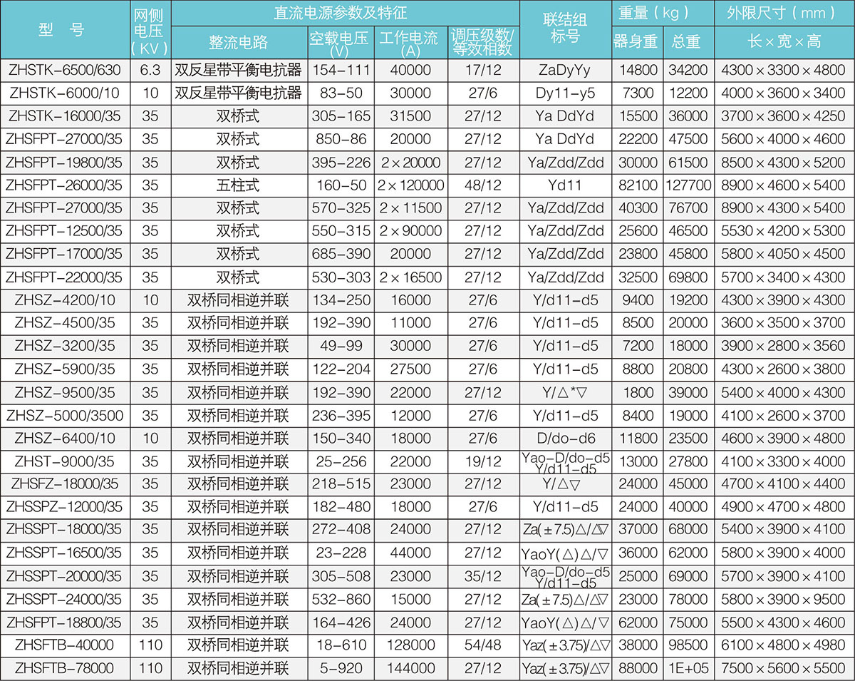 電化學(xué)整流變壓器用于電解有色金屬,電解食鹽以制取氯堿、電解水以制取氫和氧。它具有以下特點: